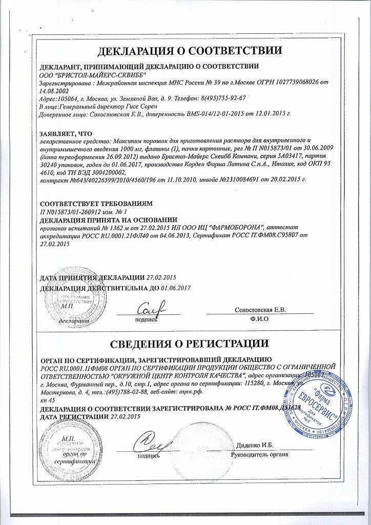 Применение. Рекомендуемая дозировка препарата Максипим для взрослых составляет 1 г, который вводят внутривенно или внутримышечно с интервалом в 12 ч.