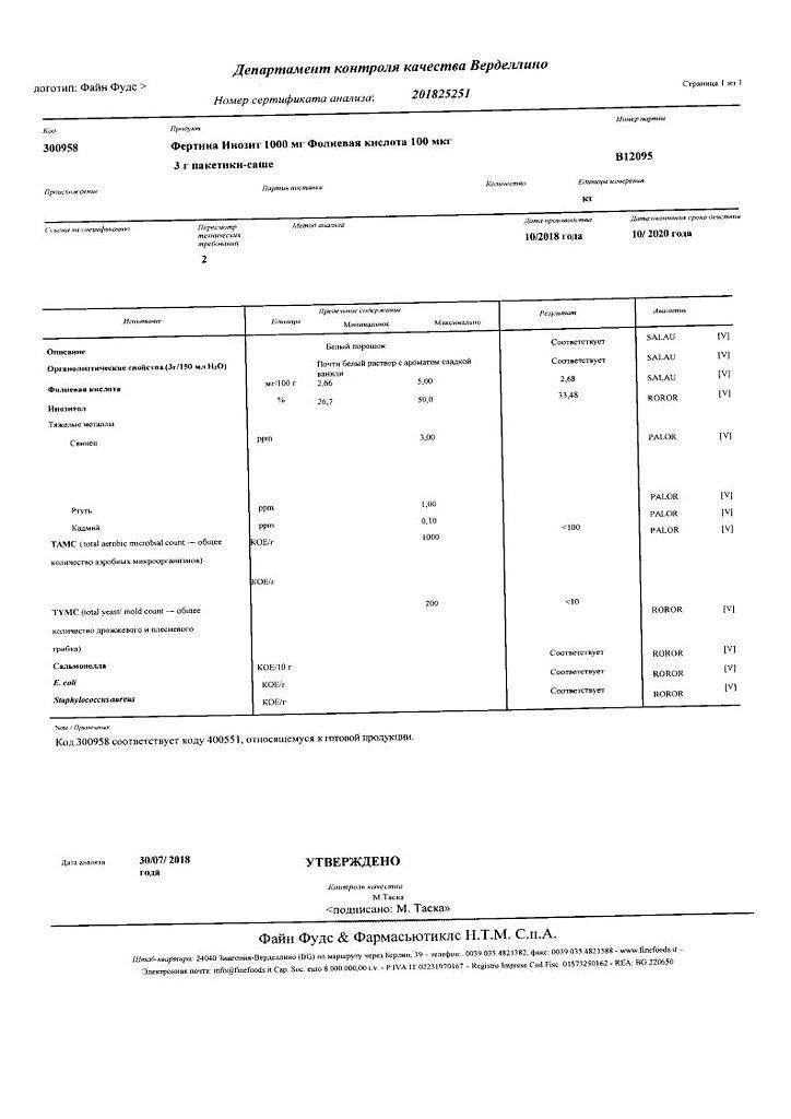 Фертина Инозит – это специально подобранная комбинация Мио-инозитола (инозит) 1000 мг и Фолиевой кислоты 100 мкг для женщин, желающих получить долгожданную беременность. За счет входящих в состав компонентов Fertina Inosit способствует коррекции метаболических нарушений, лежащих в основе дисфункции яичников у женщин и сперматогенеза у мужчин.