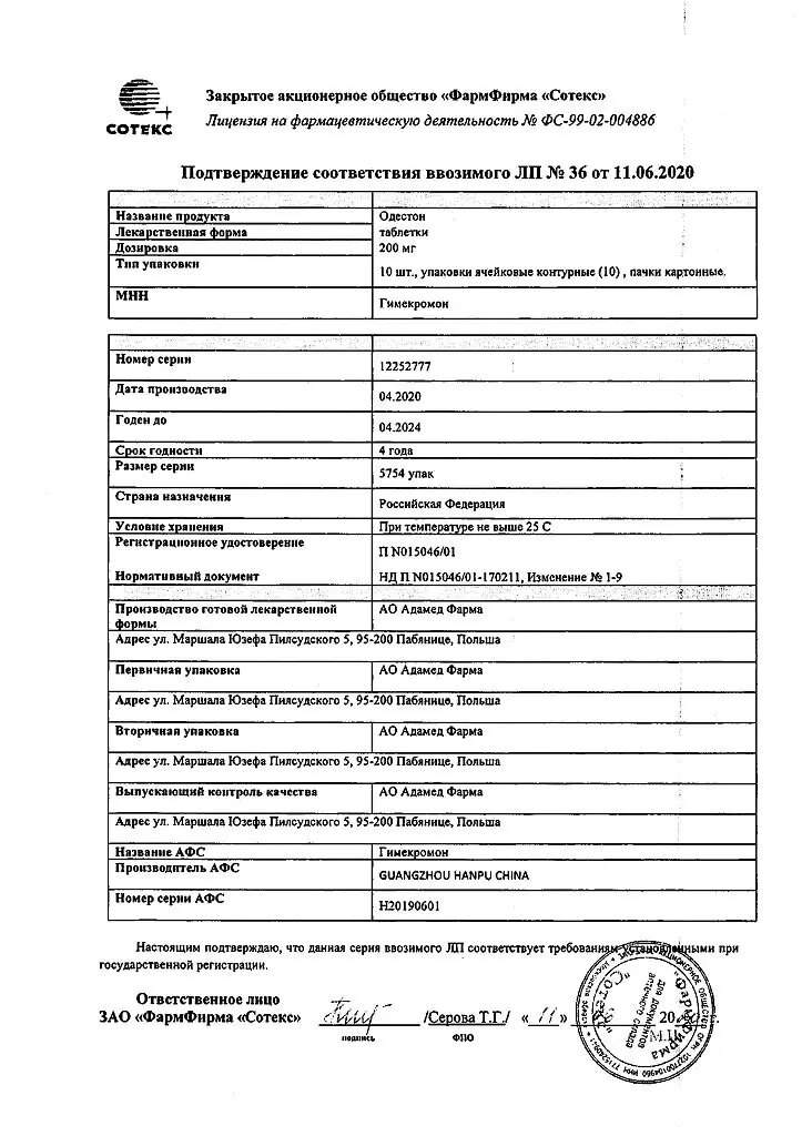 В настоящее время о случаях передозировки препарата Одестон не сообщалось.