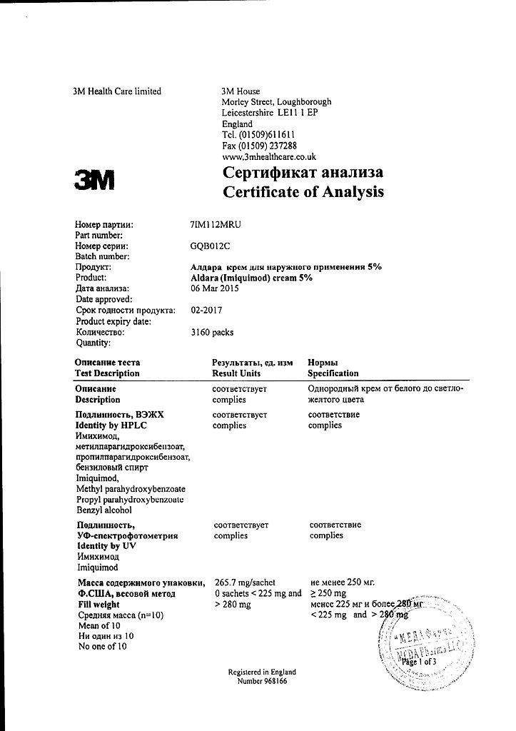 Особые указания. Крем Алдара применяется перед сном. Использование избыточного количества крема или более длительный контакт крема с кожей может вызвать выраженную местную реакцию.