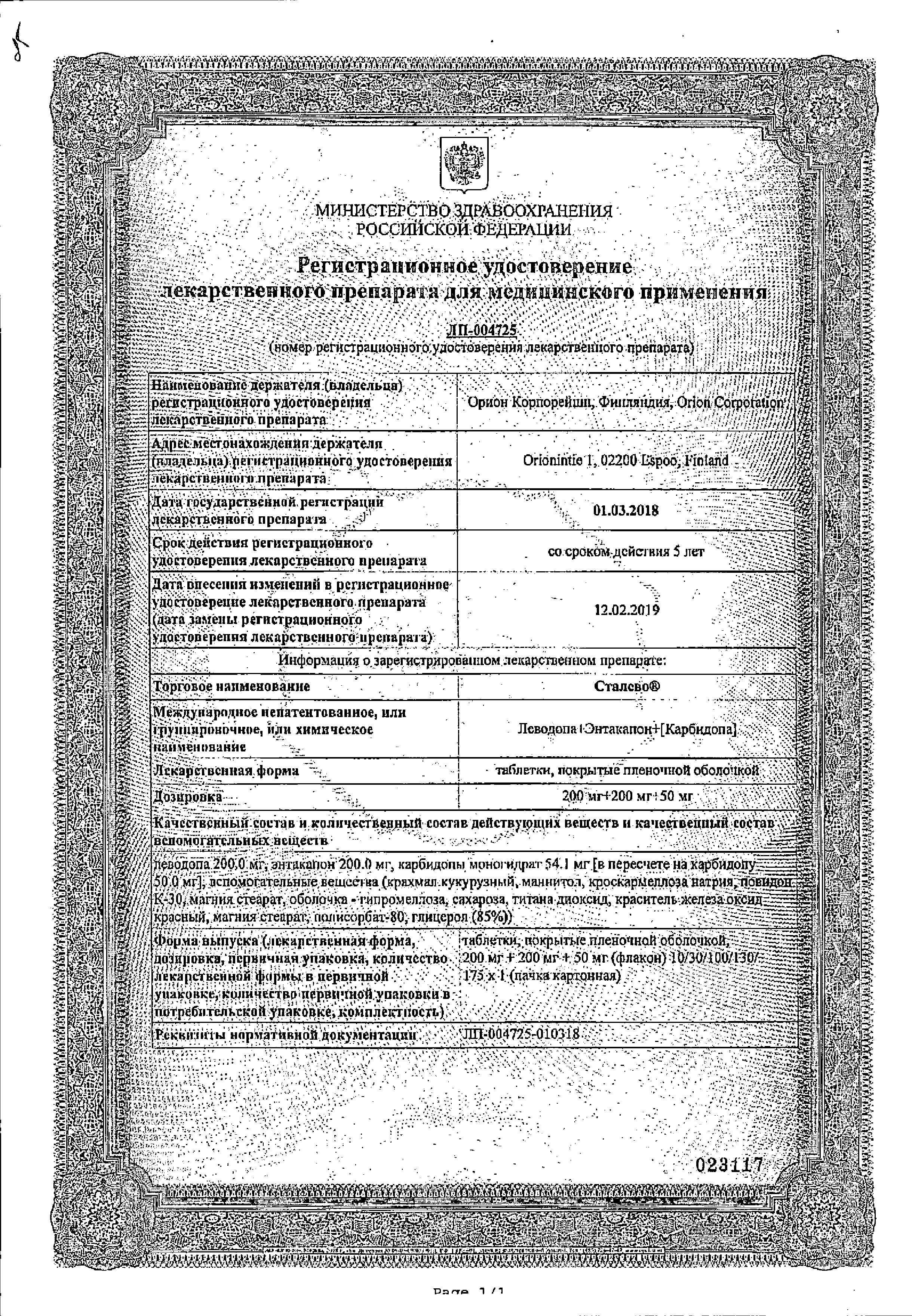 Особые указания. Время и состав пищи влияют на эффективность леводопы. Если Сталево принимать во время или сразу после еды, или если еда содержит много белка, леводопа часто оказывает недостаточное действие. Лучше всего принимать препарат за полчаса до или через полтора часа после еды – если только врач специально не рекомендовал иначе.