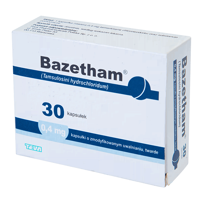 Базетам – лекарственное средство для симптоматического лечения доброкачественной гиперплазии предстательной железы. Базетам (тамсулозина гидрохлорид 400мкг) является блокатором альфа-адренорецепторов и, воздействуя на гладкие мышцы предстательной железы, шейки мочевого пузыря и простатической части уретры, снижает их тонус, уменьшает раздражение и способствует оттоку мочи. Ввиду своей нетоксичности Базетам может быть использован у пациентов с проблемами почек и печени. Базетам не оказывает существенного влияния на артериальное давление.