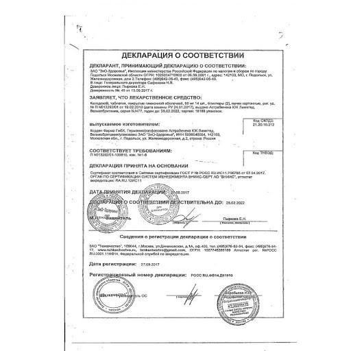 Вспомогательные вещества: лактозы моногидрат - 61 мг, карбоксиметилкрахмал натрия - 7.5 мг, повидон - 5 мг, магния стеарат - 1.5 мг.