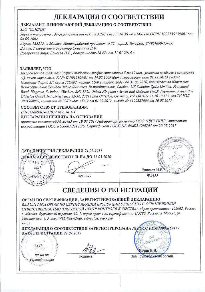 Противопоказания. Таблетки Зофран нельзя применять при: