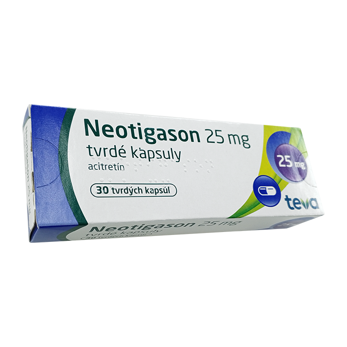 1 капсула Неотигазон 25 мг содержит активное вещество: ацитретин 25 мг, (в виде сухого спрея, содержащего 25 % активного вещества).